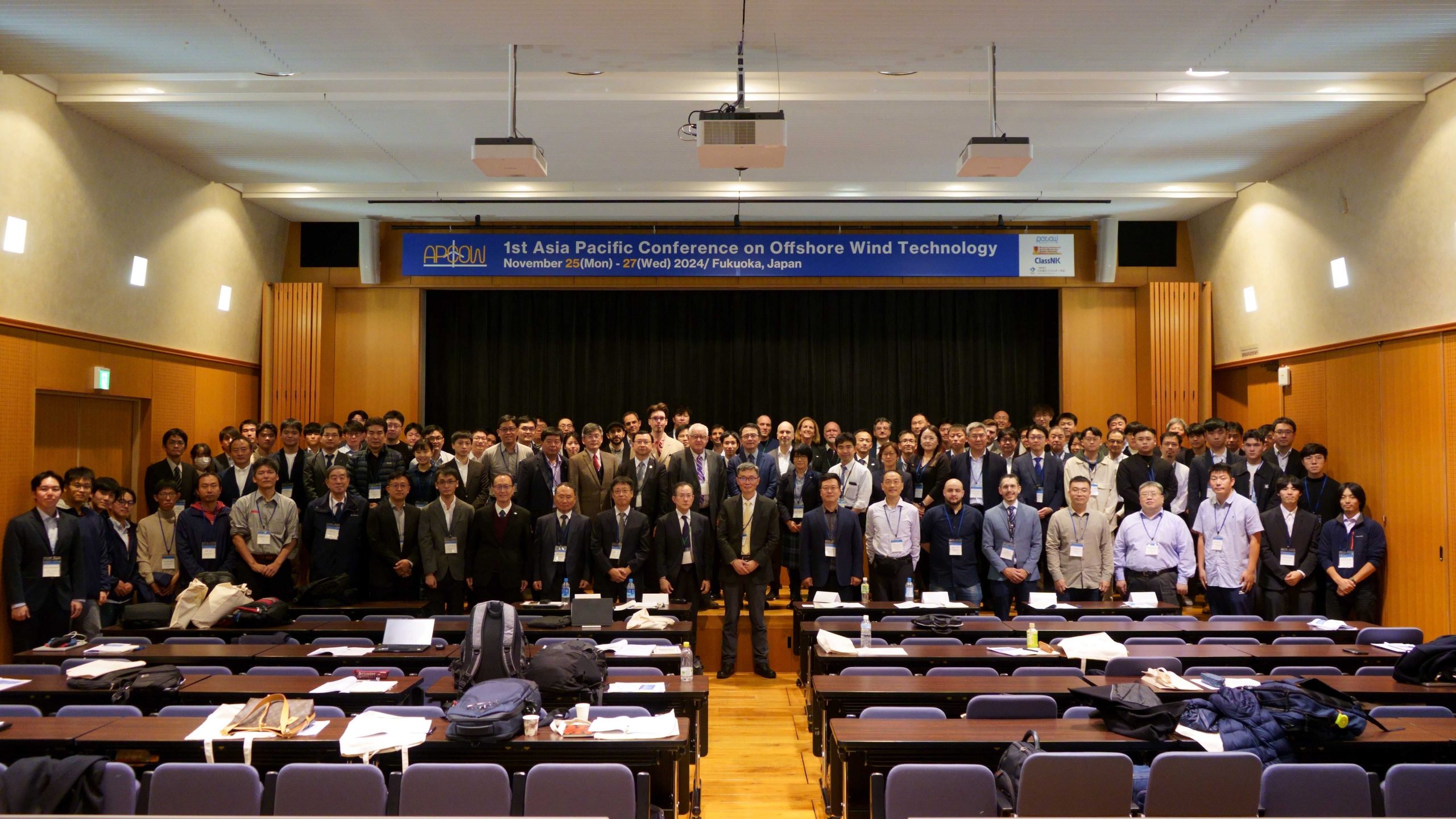From November 25 to 27, 2024, the Research and Education Center for Offshore Wind (RECOW) hosted the “1st Asia-Pacific Conference on Offshore Wind Technology (APCOW 2024)” at the Kyushu University Nishijin Plaza. The conference brought together approximately 200 researchers, experts, and industry representatives from across Asia and other regions of the world, providing a valuable forum for in-depth discussions on the latest trends in offshore wind technology and approaches to addressing key challenges.