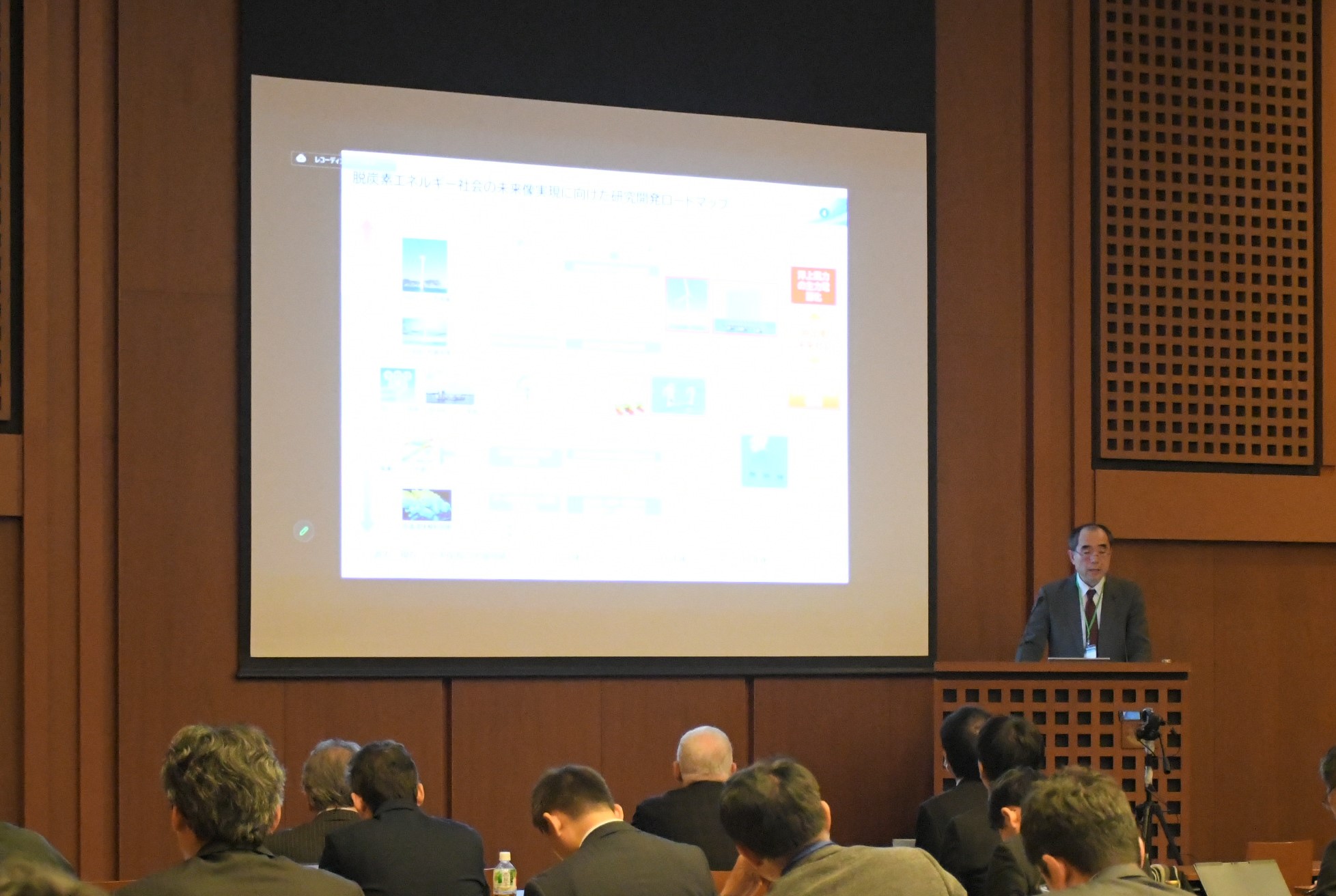 続けて「中型レンズ風車システムとその大容量化(クラスタ風車)」として㈱リアムウィンド代表取締役&九州大学応用力学研究所元所長 大屋 裕二氏(RECOWアドバイザー)に本学と共同開発された『レンズ風車』についてご講演をいただきました。