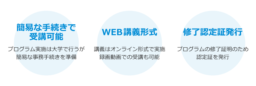 講義はオンライン形式。実際の講義時間後には講義動画を提供、好きな時間に講義動画を視聴して受講も可能。